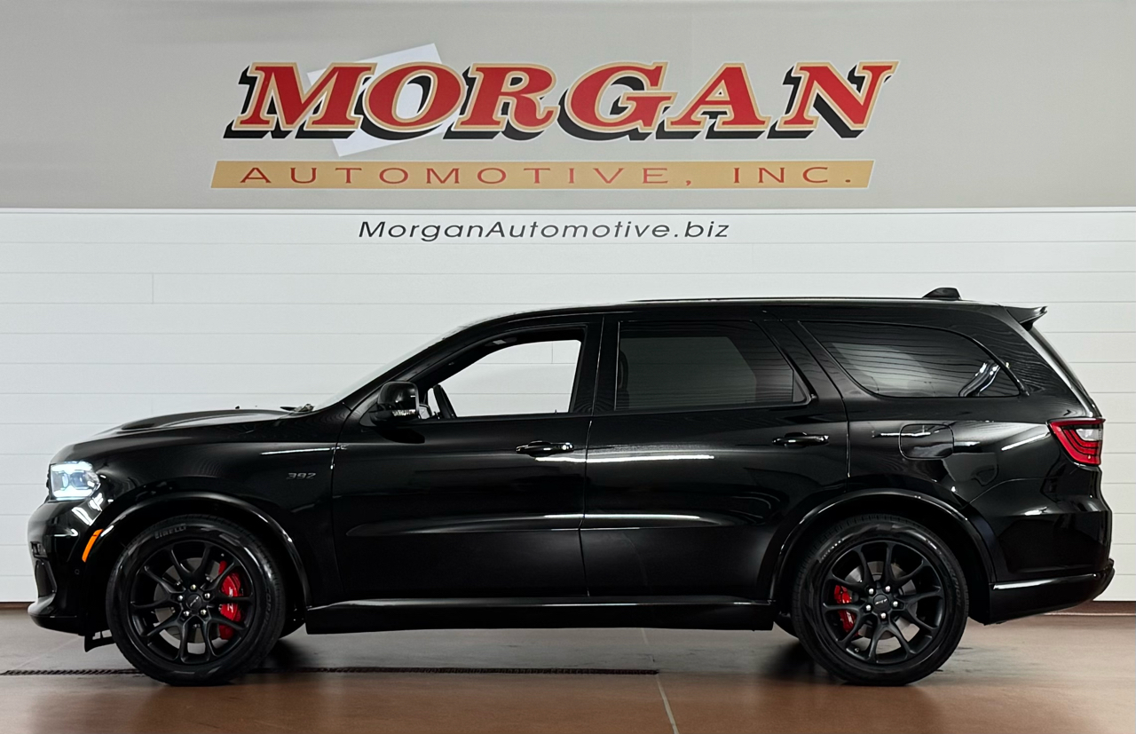 SHOWROOM CONDITION WITH ONLY 808 MILES!!!Now available at Morgan Automotive, the 2022 Dodge Durango SRT 392 AWD in Diamond Black exudes muscle and refinement in equal measure. With its potent 6.4L HEMI V8, this SUV boasts heroic performance while its exterior turns heads thanks to 20×10-inch lights-out alloy wheels, LED headlamps with automatic high beams, fog lamps, body-color heated power mirrors with integrated turn signals, deep-tinted glass, a bold black grille accented with SRT 392 badging, and a power liftgate for cargo convenience. Inside, you’ll step into luxury with leather laguna heated and ventilated front seats, driver memory settings, a heated performance leather steering wheel, tri-zone climate control, a massive 10.1-inch Uconnect 5 touchscreen with navigation, premium audio setup, and ambient lighting that accentuates Durango’s driver-centric cockpit. Other options include a Power Liftgate, Power Sunroof, 19 Harmon Kardon Audio Speakers, Black Package and Red Brembo Brakes. With room for six and packed with advanced safety and tech features like blind-spot monitoring, rear cross-traffic alert, adaptive cruise, and configurable drive modes, this SRT 392 balances raw power with everyday usability. Vehicle is covered under the remaining balance of factory warranty. *Price may have changed. Please visit our website for most up to date price.* ALL VEHICLES COME WITH THE “MORGAN PROMISE” MEANING ALL VEHICLES THAT WE SELL WILL HAVE AT LEAST 50% TIRE LIFE, 50% BRAKE LIFE, AND A WARRANTY APPLIED. ALL WARRANTIES CAN BE UPGRADED THROUGH PROGUARD AT TIME OF PURCHASE. FOR MORE INFORMATION PLEASE CONTACT OUR COMMISSION FREE SALES TEAM TODAY AT SALES@MORGANAUTOMOTIVE.BIZ OR BY CALLING 717-664-3833