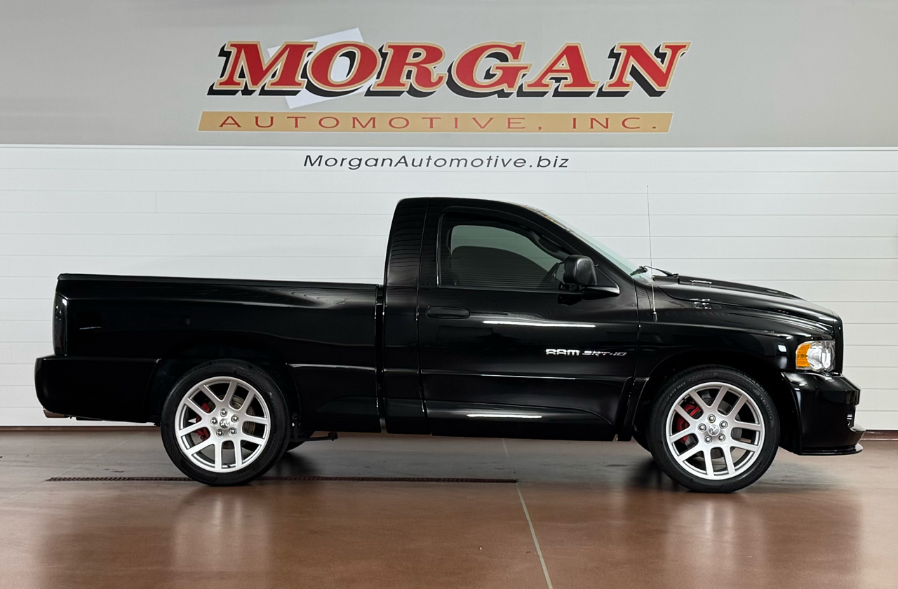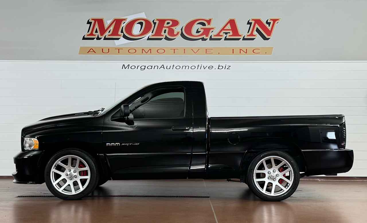 RARE TRUCK!!Now available at Morgan Automotive, this striking 2004 Dodge Ram SRT-10 Regular Cab RWD in pristine Black with only 32,083 miles is a high-performance legend ready to rip. Built with the SRT-10 Quick-Order Package, it comes packing the mighty 8.3-liter Viper V10 engine delivering 500 horsepower / 525 lb-ft of torque, backed by a Tremec 6-speed manual transmission and a 4.10 rear axle for that truly visceral drive. On the exterior, this beast rides on 22” polished aluminum “Viper-style” wheels wrapped in 305/40ZR-22 performance tires, sports a power bulge hood, body-color front/rear fascias, a rear spoiler to help with high-speed stability, a sliding rear window, dual bright exhaust tips, and a bold, muscular stance. Inside, you’ll be welcomed by a performance-oriented cabin featuring a leather & preferred suede 40/20/40 split bench seat with center storage, power adjustable pedals, leather-wrapped steering wheel with audio controls, dual-zone automatic climate control, alarm system, sentry key theft deterrent, overhead console with trip computer, premium Infinity sound system with subwoofer & 6-disc CD changer, auto-dimming rearview mirror, illuminated visor vanity mirrors, home-link garage door opener, alloy sport pedals—plus all the creature comforts you expect from a performance truck. With its blend of low mileage, raw V10 power, and crafted performance upgrades, this SRT-10 Regular Cab is a rare find—and it’s ready to thrill the moment you fire it up. Vehicle has a great service history report along with being fully serviced here including fresh inspection, fresh oil along with our multi point check sheet. Vehicle is being sold as is. *Price may have changed. Please visit our website for most up to date price.* ALL VEHICLES COME WITH THE “MORGAN PROMISE” MEANING ALL VEHICLES THAT WE SELL WILL HAVE AT LEAST 50% TIRE LIFE, 50% BRAKE LIFE, AND A WARRANTY APPLIED. ALL WARRANTIES CAN BE UPGRADED THROUGH PROGUARD AT TIME OF PURCHASE. FOR MORE INFORMATION PLEASE CONTACT OUR COMMISSION FREE SALES TEAM TODAY AT SALES@MORGANAUTOMOTIVE.BIZ OR BY CALLING 717-664-3833